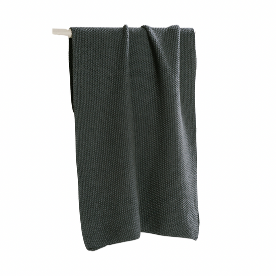 These knitted hand towels made from 100% soft organic cotton are perfect for using in the kitchen, bathroom or laundry. Each hand towel measures approximately 45cm x 65cm. Available in charcoal and matches perfectly with our Lavette grey washers.