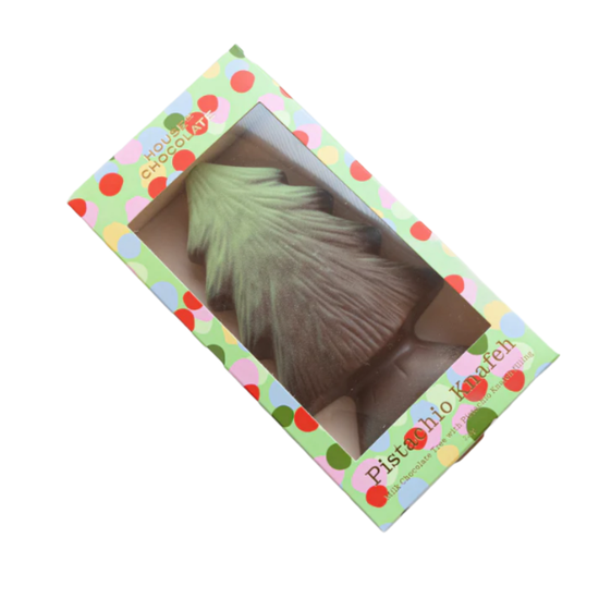Introducing House Of Chocolates' NEW viral Dubai inspired chocolate tree. Their newest and most popular chocolate bar, now available in a festive delight! A delicate balance of texture and flavour — golden, crispy kataifi pastry paired with rich pistachio praline, all encased in velvety 37% couverture milk chocolate.