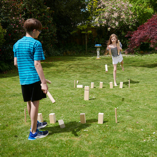 Kubb is a fantastic team game for players of all ages, and is ideal for family and social gatherings and corporate team-building events.